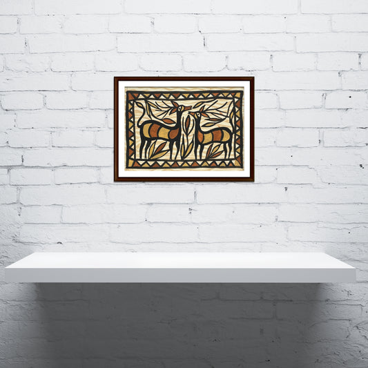 Sohrai Sohrai Art – Twin Deer Painting | Hand-Painted Tribal Wall Décor (Unframed)