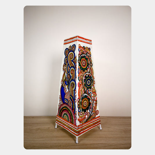 Tholu Bommalata Lamp – Peacock & Flowers (5" - Conical)