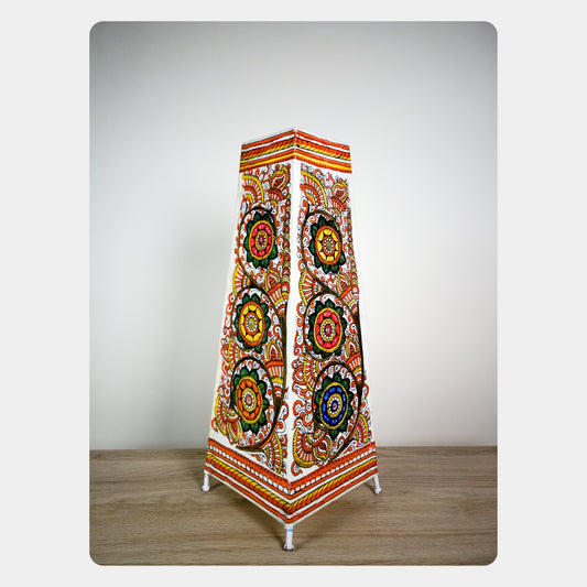 Regular price Rs. 2,499.00Regular priceUnit price / perSale price Rs. 2,499.00Immerse your space in serenity with this handcrafted Tholu Bommalata Lamp depicting Lord Buddha in deep meditation beneath the Bodhi tree. Inspired by traditional Andhra shadow puppetry, the artwork captures the moment of enlightenment, surrounded by vibrant lotus motifs and sacred symbolism. The cone-shaped design and intricate hand-painted detailing make it a spiritual centerpiece, radiating peace and calm. Perfect for meditation rooms, mindful corners, or as a thoughtful gift rooted in Indian folk art.